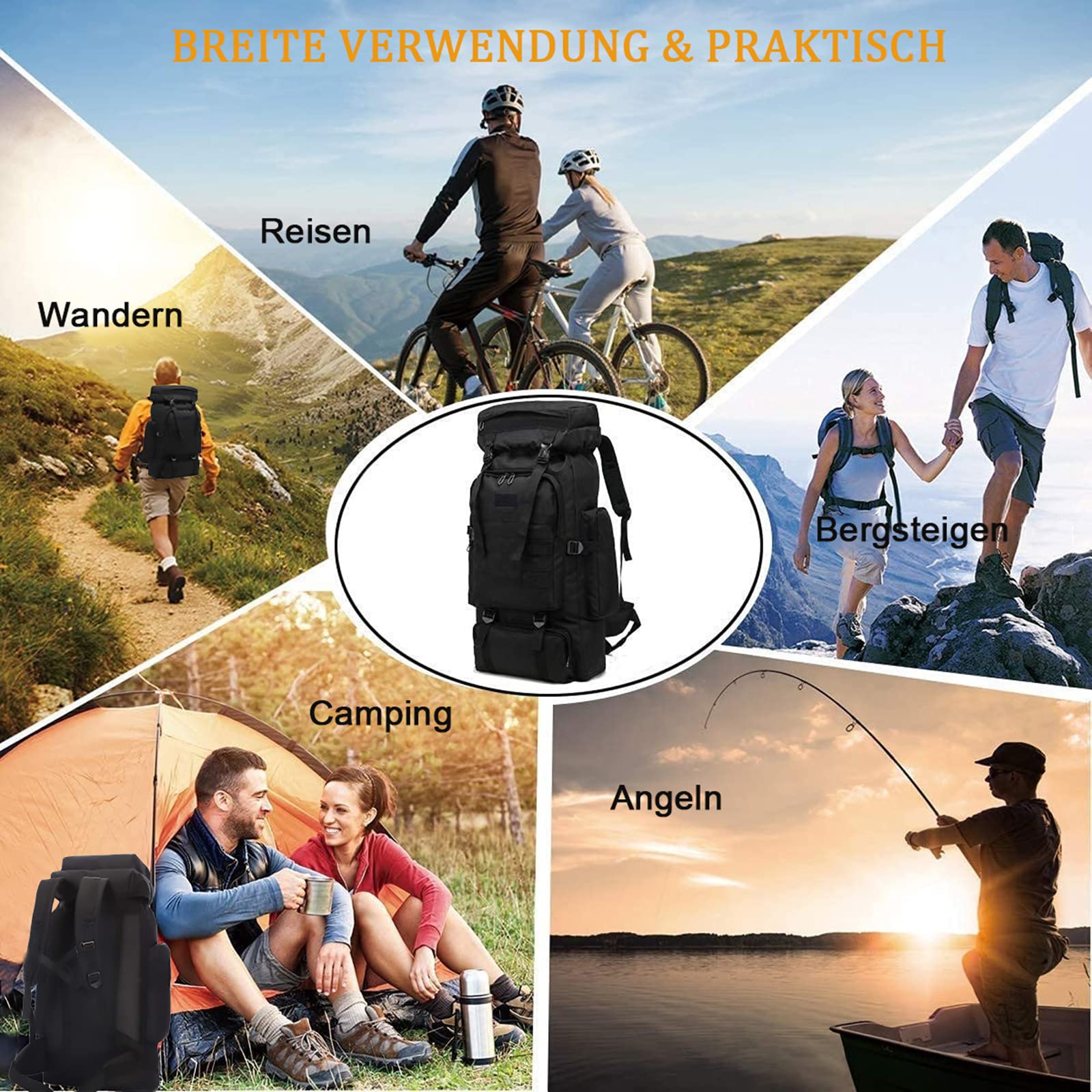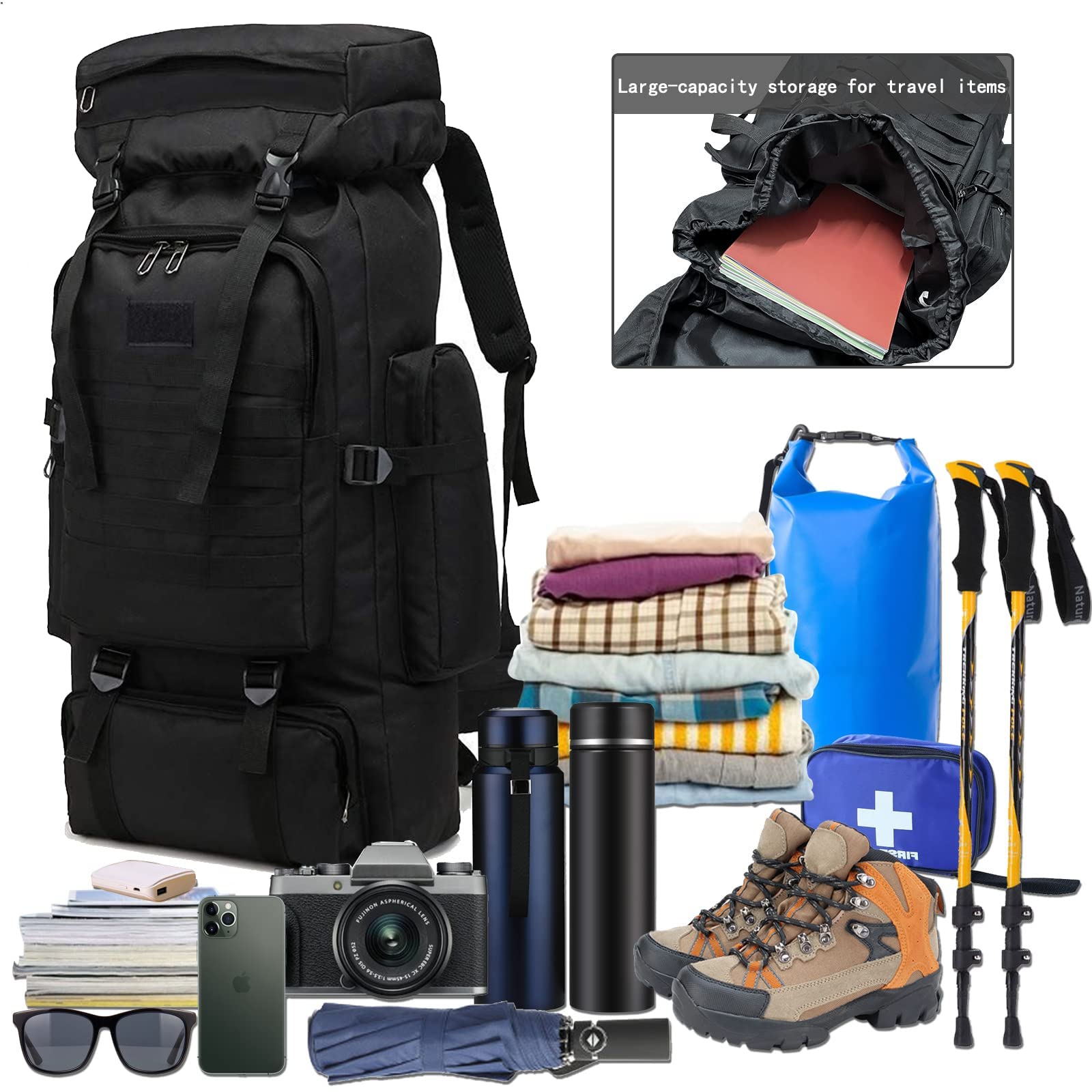 ​Большой рюкзак 60-80 л – Военный тактический рюкзак для мужчин, камуфляж, аварийный рюкзак, водонепроницаемый, рюкзак для выживания, боевой рюкзак, походный рюкзак, лёгкий​