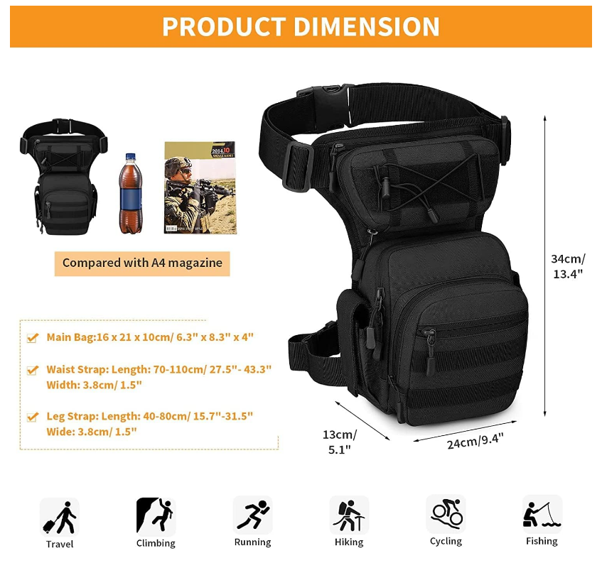 Широкая сфера применения: Походная сумка BITUOR с системой MOLLE компактна и портативна. Это тактическая поясная сумка, используемая военными, полицией и пожарными, а также отлично подходящая для ношения во время альпинизма, пешего туризма, исследований, езды на велосипеде и тактических видов спорта.